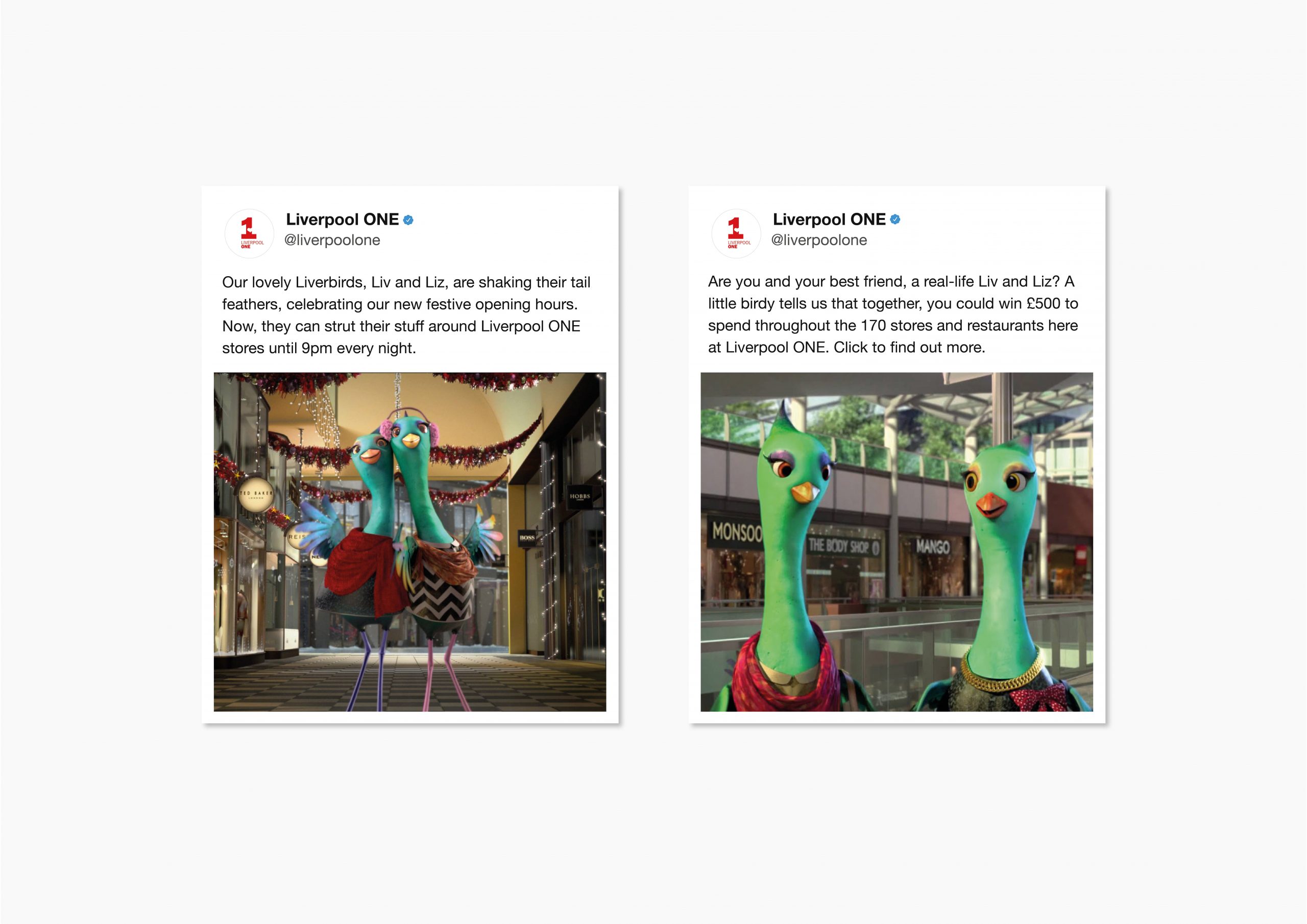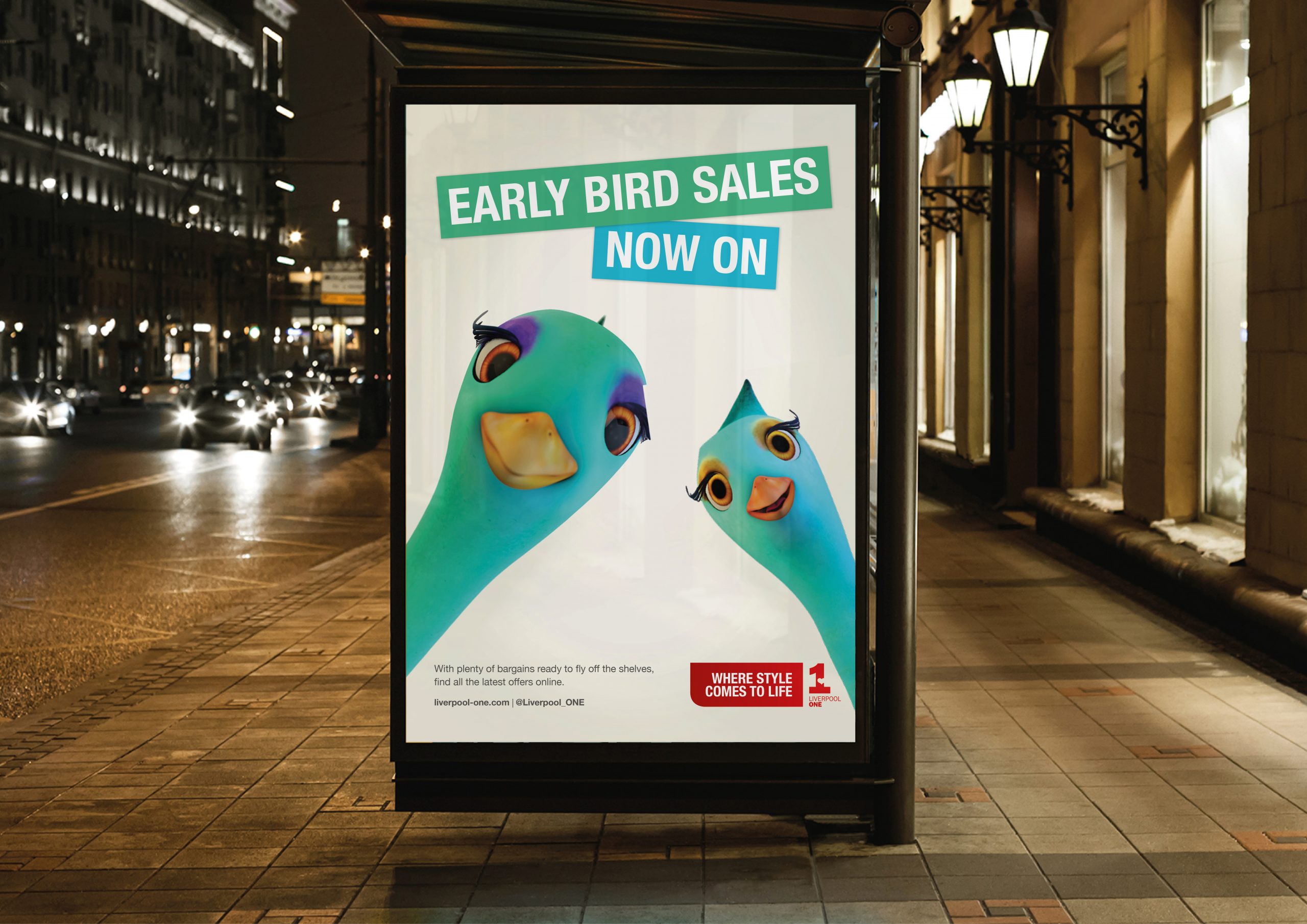 Inspired by the television series ‘The Liver Birds’, this campaign for Liverpool ONE saw the iconic statues that look over the shopping complex come to life. Who better to talk about everything Liverpool ONE than two birds that love to shop, right? In a creature comfort style, we used vox pops to keep a level of authenticity and then rolled out Liv and Liz across any marketing materials we could get their wings on.